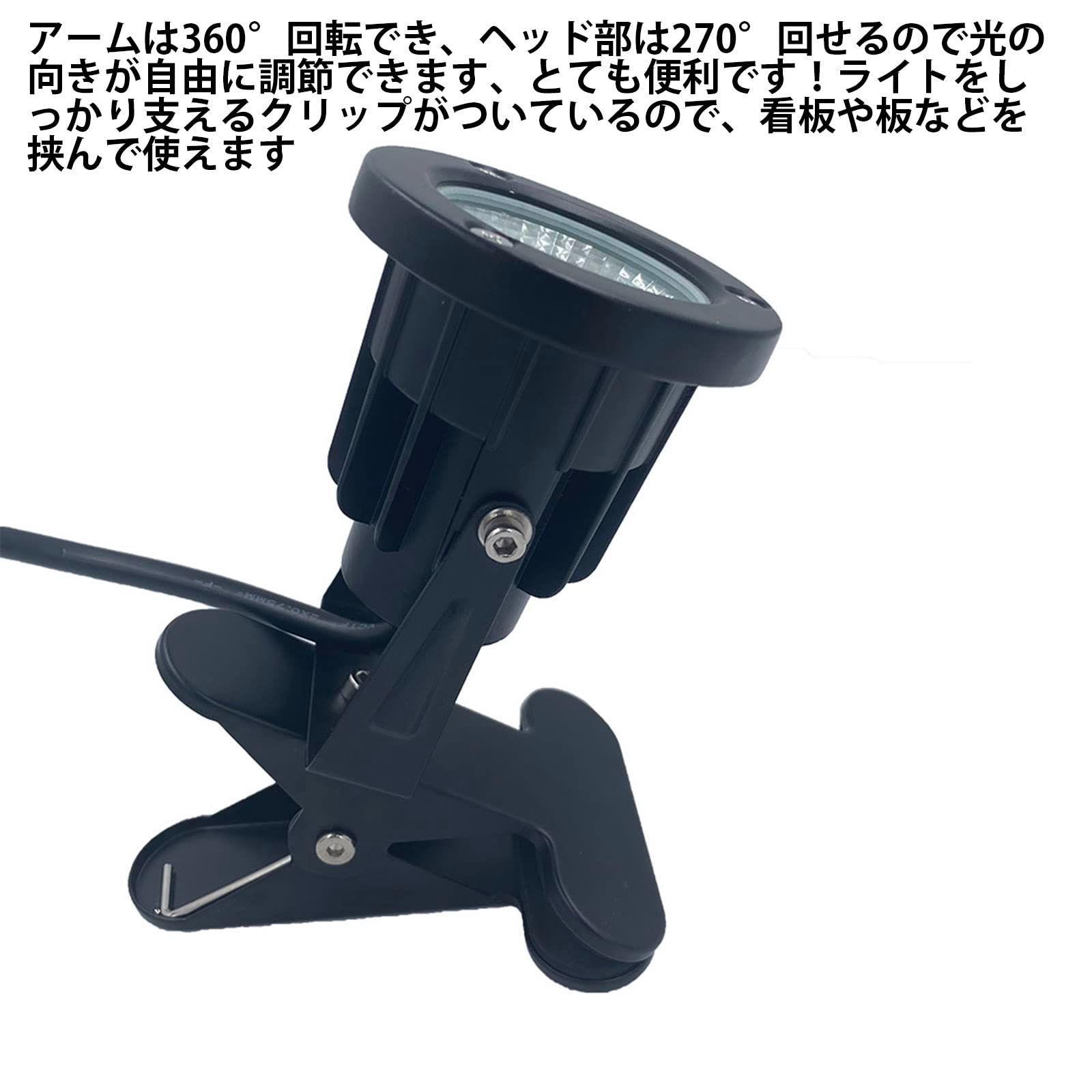 防雨 防水型 led クリップライト 7W 630lm コード長3m led ライト スポットライト 屋外 照明 看板用 店舗 電気スタンド デスクスタンド アームライト ピッコロライト アウトドア エクステリアライト (昼白色-スイッチ付)