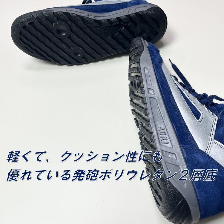 数社 青木産業 ATENEOアテネオ ZR-21シリーズ 安全靴 ZR21N SILVER ネイビー×シルバー 本革JISベロア革 シルバー表革使用 ZR21