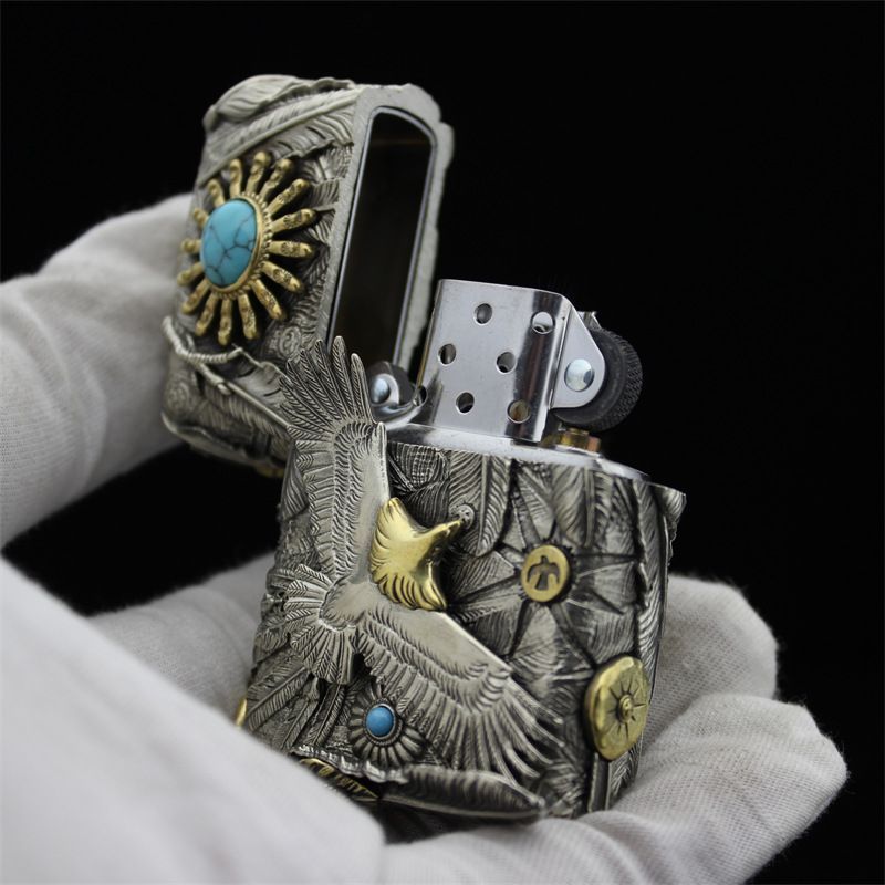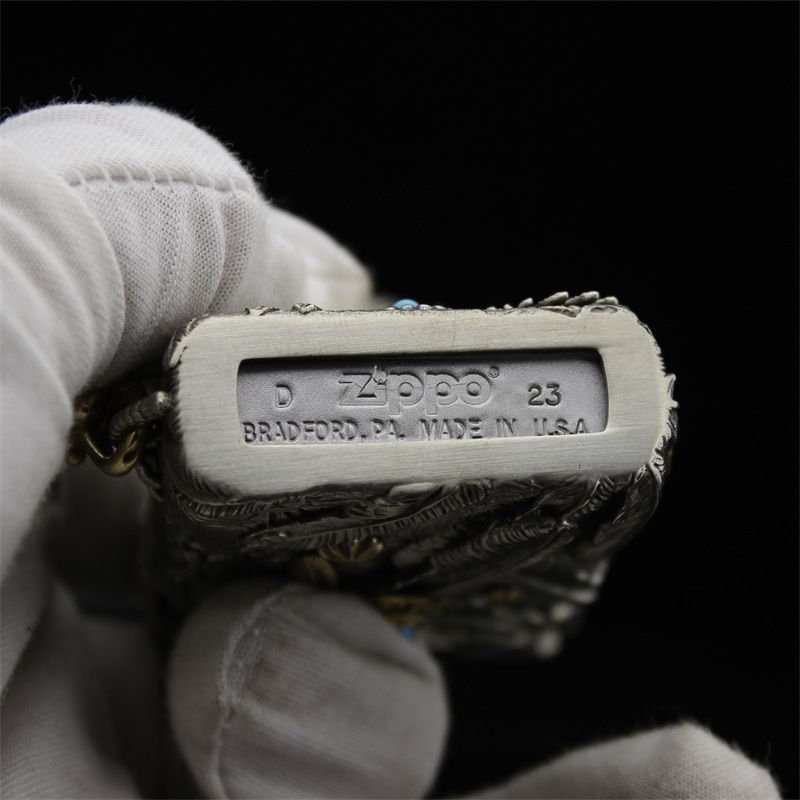 品 手彫り ライター 立体感 ZIPPO ジッポー オイルライター 重量感 真鍮製 シルバー 煙グッズ 木 き