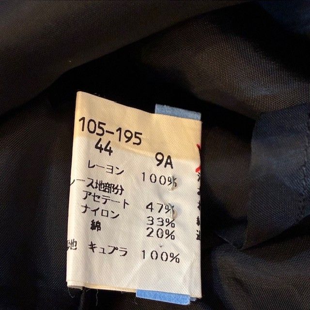 品質表示タグには**【44】と【9A】の記載がございます。独自のサイズ展開、またはインポートサイズの場合もありますが、実寸から見ると日本のMサイズ相当の作りです。