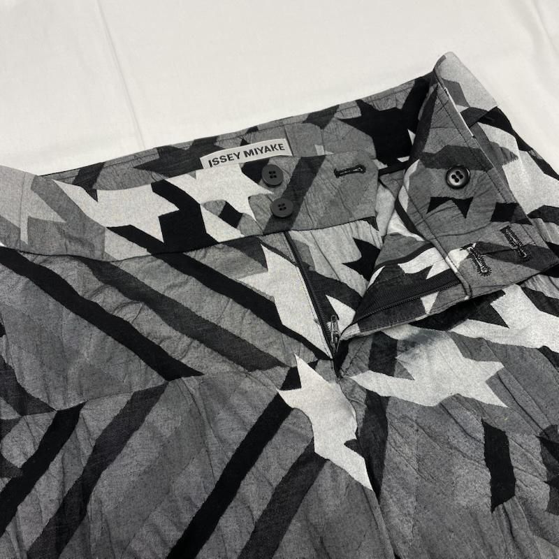 イッセイミヤケ 千鳥柄 セットアップ スーツ ジップアップ ジャケット 総柄 シワ加工 銀タグ レディース 2 ISItems 古着 50147956