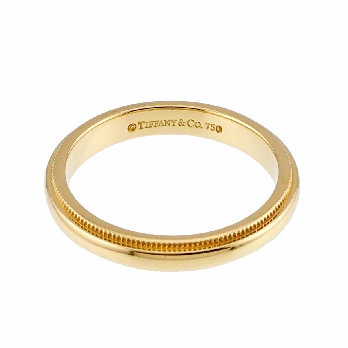 ティファニーから、イエローゴールドの縁にミル加工が施された繊細なデザインの ミルグレイン バンドリング です。シンプルながら細部までこだわったデザインで高級感漂うジュエリーです。