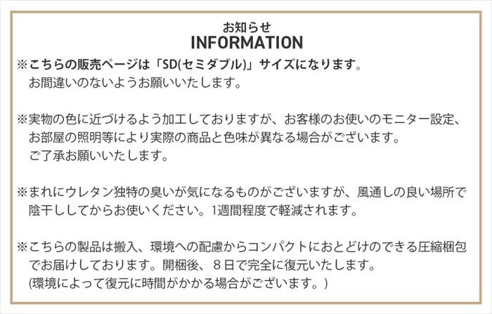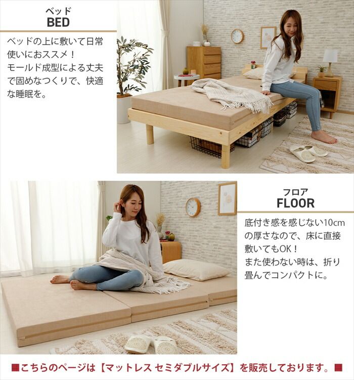 モールド成型による丈夫でかためのつくりが特徴のセミダブルサイズマットレスです。