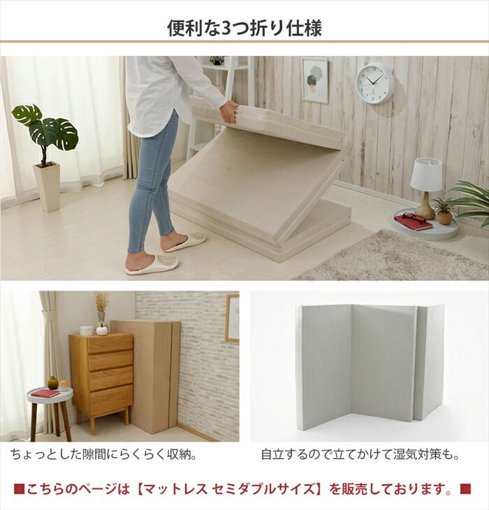 折りたたみマットレス セミダブル マットレス 三つ折り ベッドマット 敷きマット 寝具 コンパクト 収納 身体に負担がかかりにくい