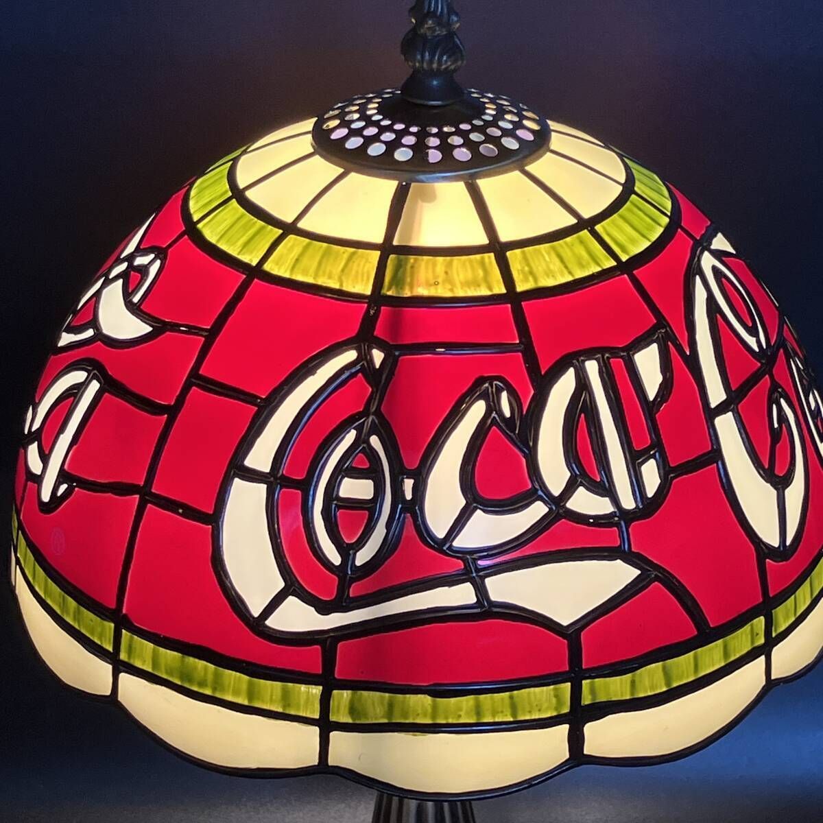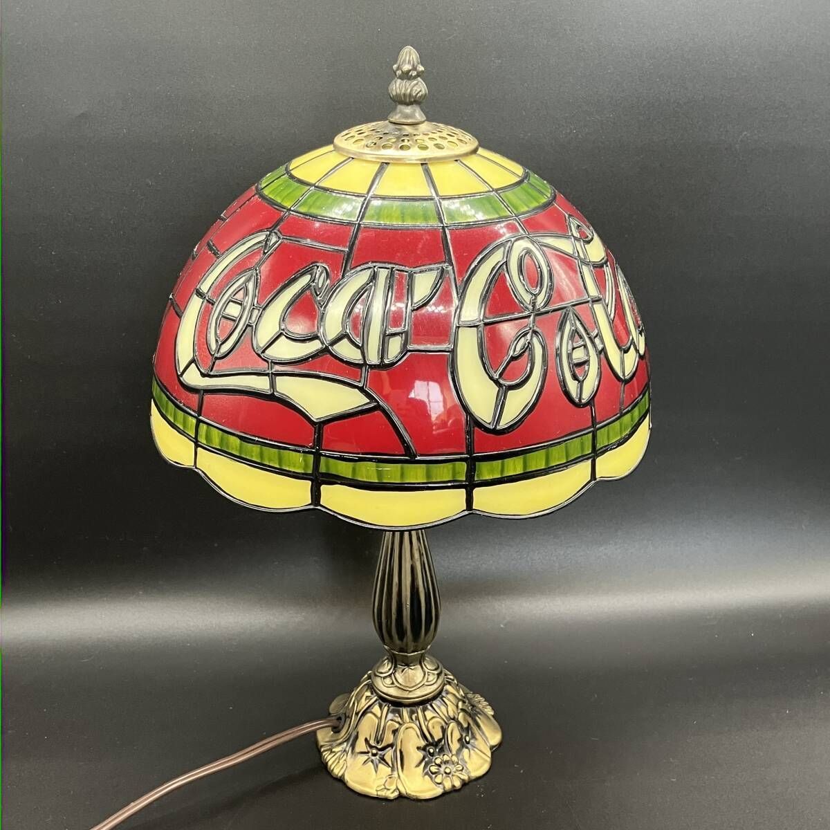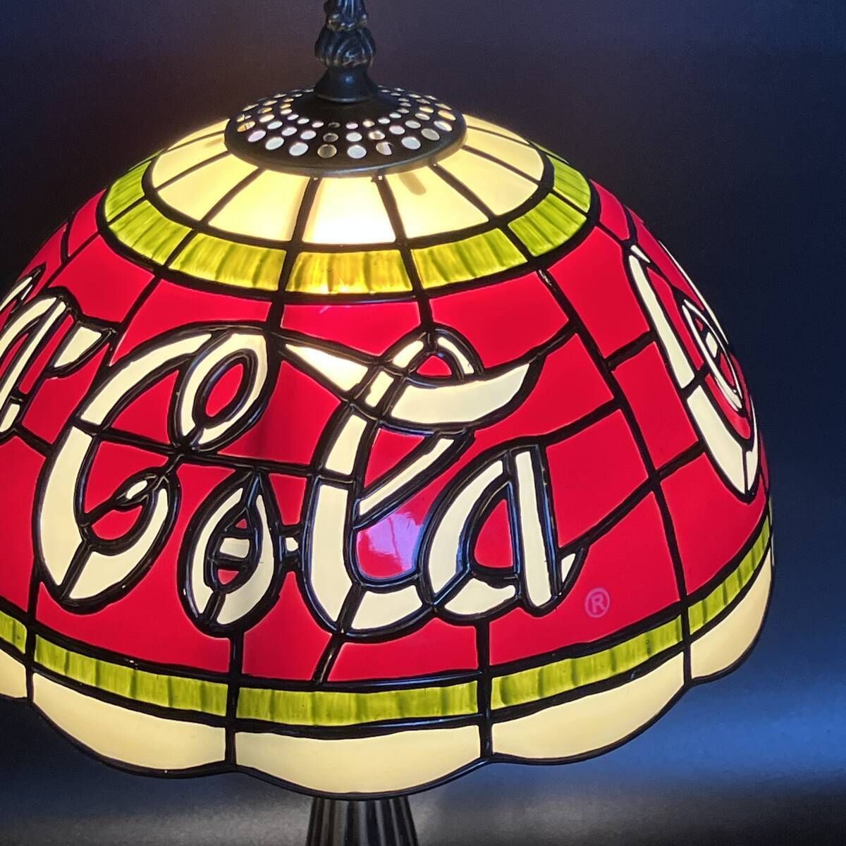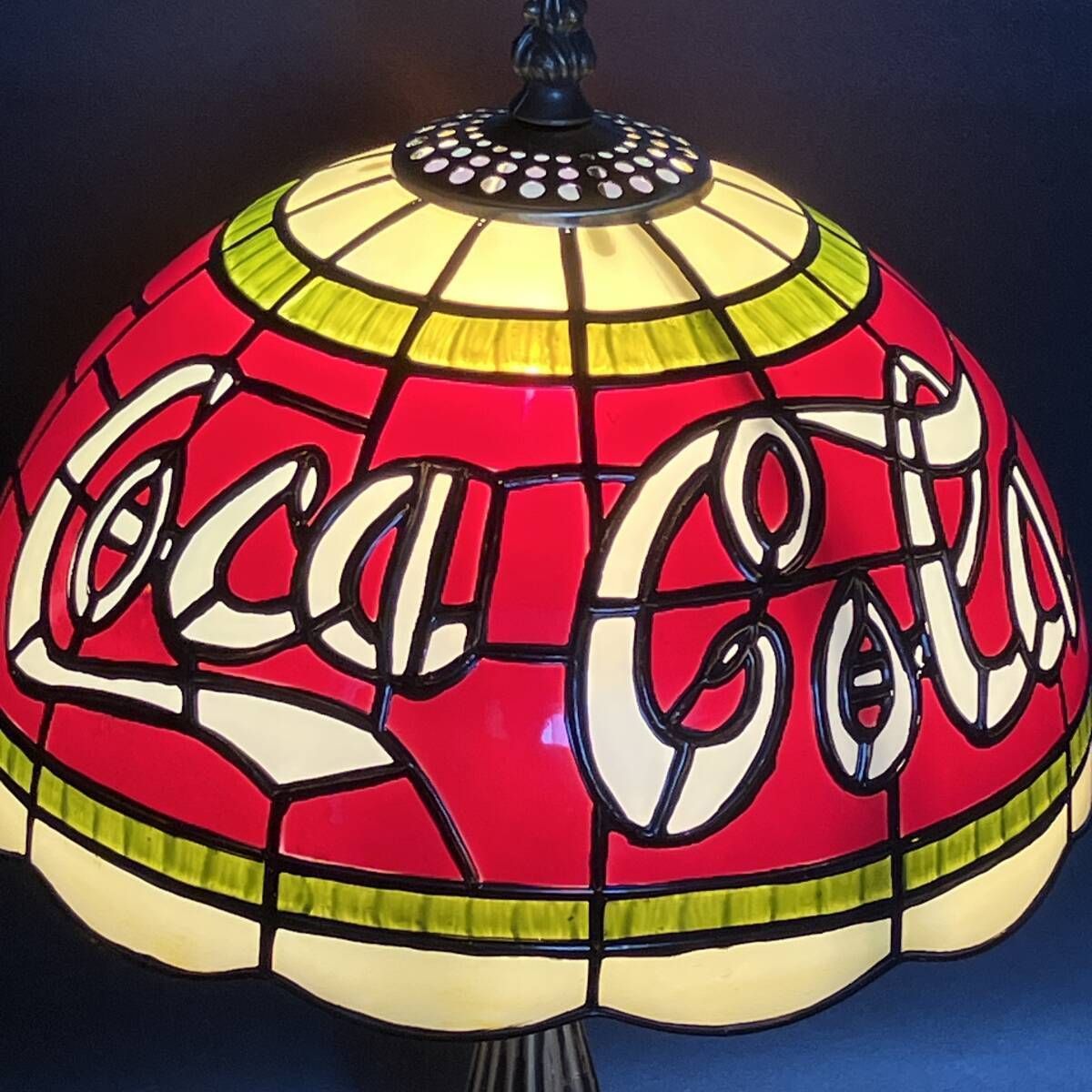 コカコーラのロゴが美しくデザインされた、ステンドグラス調のテーブルランプです。