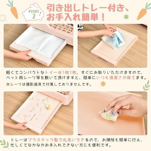 楽にお掃除、衛生面もばっちり!:床板の穴を通して下の引き出しトレーに砂や食べ物、小物などが落ちるので、飛び散った砂をかき集めなくてもトレーを取り出してゴミ箱に捨てるだけ!それに、床板も取り外せるので、汚れたら洗えることもできます。