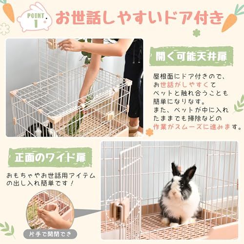 BTM ウサギケージ 犬 猫ケージ 小動物用 室内飼い 引き出しトイレ付 掃除簡単 移動便利 キャスター付 スチール製 天井扉 脱走防止 いぬ ネコ うさぎ ハムスター 頑丈 キャット 休憩所 ペット用品