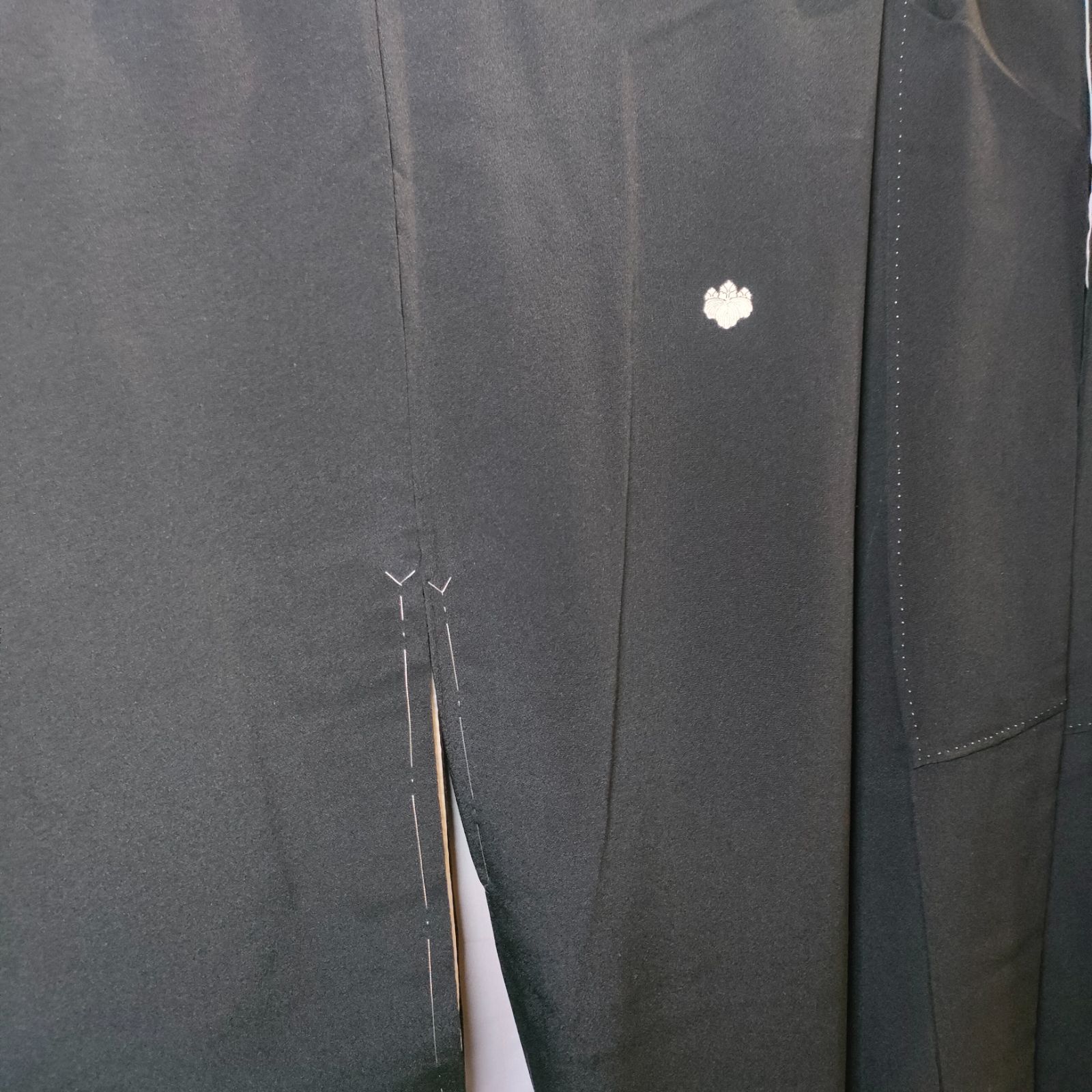 29 しつけ糸付き ♥ 黒紋付 留袖 黒留袖 五つ紋 着物 礼装 正礼装家紋 年代物 アンティーク Vintage 和装 浴衣 和服 骨董 リメイク 昭和 レトロ 婦人服 一点物 JAPAN 日本 織物 和装 和服 冠婚葬祭 喪服 素材 生地 正絹
