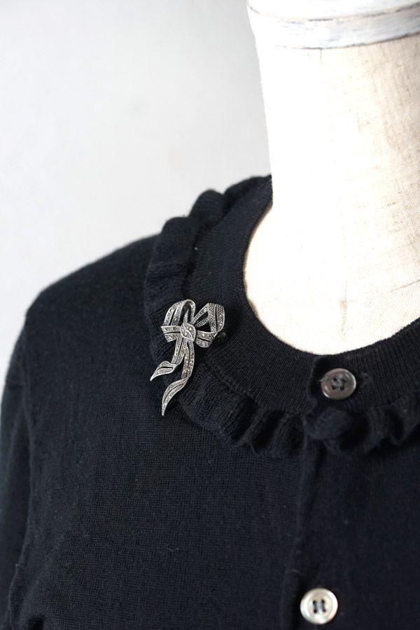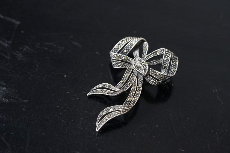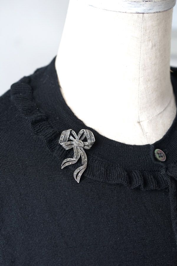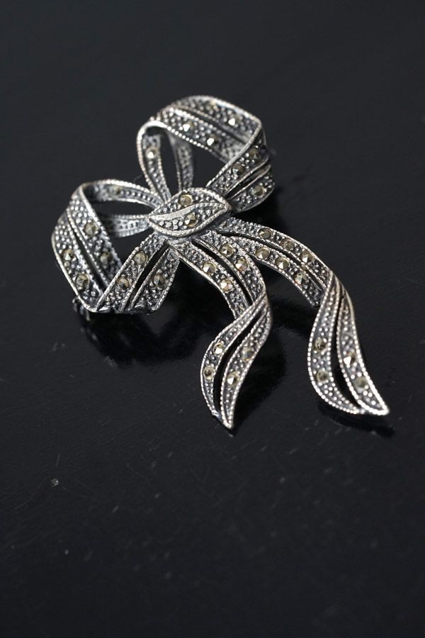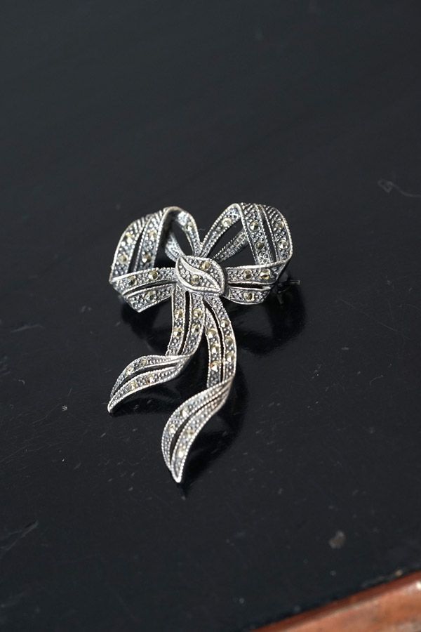 アンティーク シルバーとマーカサイト リボンブローチ 1960年代 ベルギー買付 3×4.8cm ga-1249