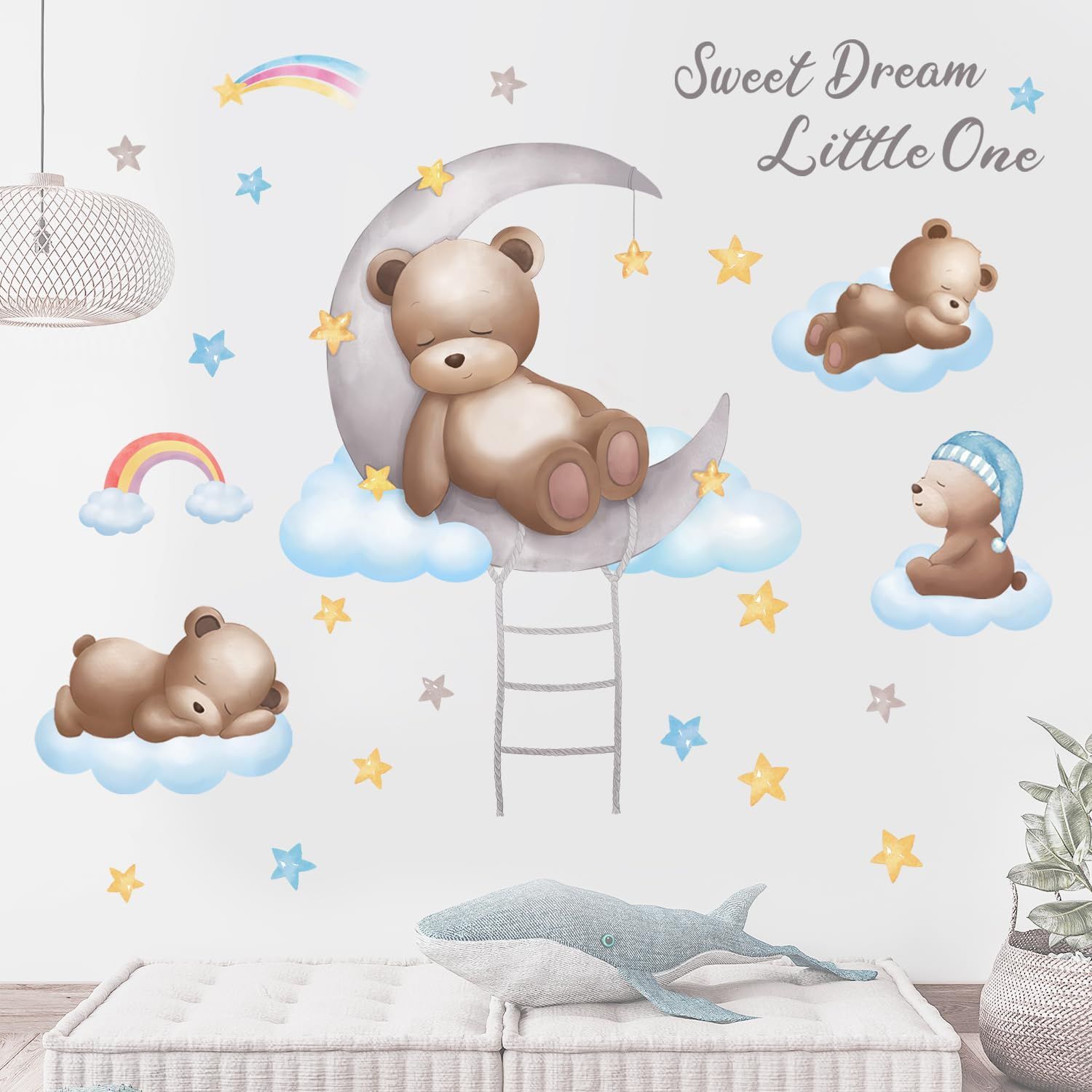DECOWALL SG2-2310 雲の上の熊 ウォール ステッカー デコ 風船 虹 パーティー 月 星 幼稚園 保育園 子供部屋 DIY用 壁転写 シール ウォールアート シール 男の子 女の子 こども バスルーム デコレーション ビニール 寝室用 ティーン キッズ ウォールペーパー 壁紙 家具 部屋用 処理 乳児 子 装飾的 リビング キッチン 贈り物 プレゼント 北欧