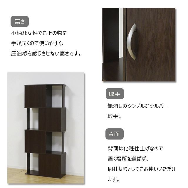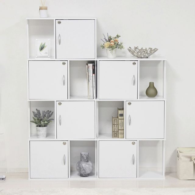 プライバシーを守る安心の鍵付。扉収納とオープン収納の組み合わせがスタイリッシュなラックです。 ◆全段鍵付き(すべて共通の鍵になります。) ◆背面は化粧仕上げになっております。 ◆扉はマグネット付なので、鍵をかけなくてもしっかり閉まります。 ◆明るく清潔感のあるホワイト、シックで落ち着きのあるブラウンの2色からお選び頂けます。