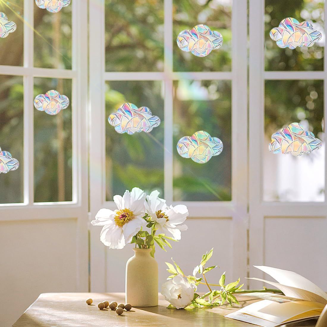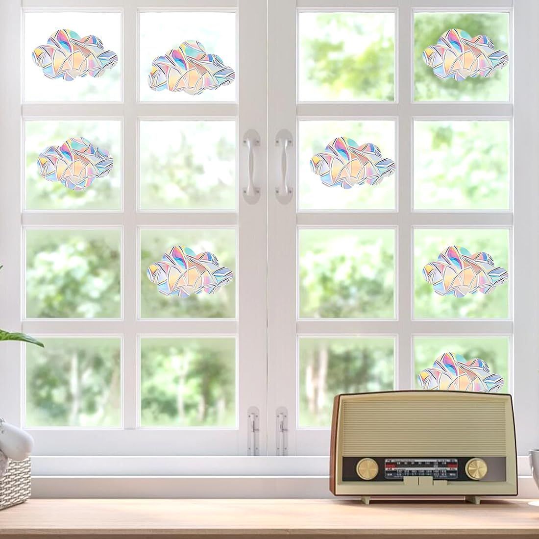 新着商品 ステッカー 窓シール サンキャッチャー 雲形 3セット24枚 レインボー プリズムシール ガラスステッカー 装飾 Voyyphixa 静電気 自己粘着 接着剤不要 衝突防止 B