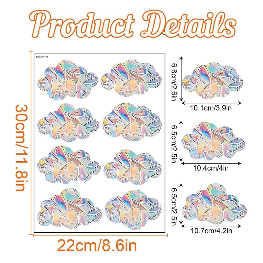 Voyyphixa サンキャッチャー ステッカー 窓シール 雲形 3セット24枚 レインボー プリズムシール ガラスステッカー 装飾 静電気 自己粘着 接着剤不要 衝突防止 (B)