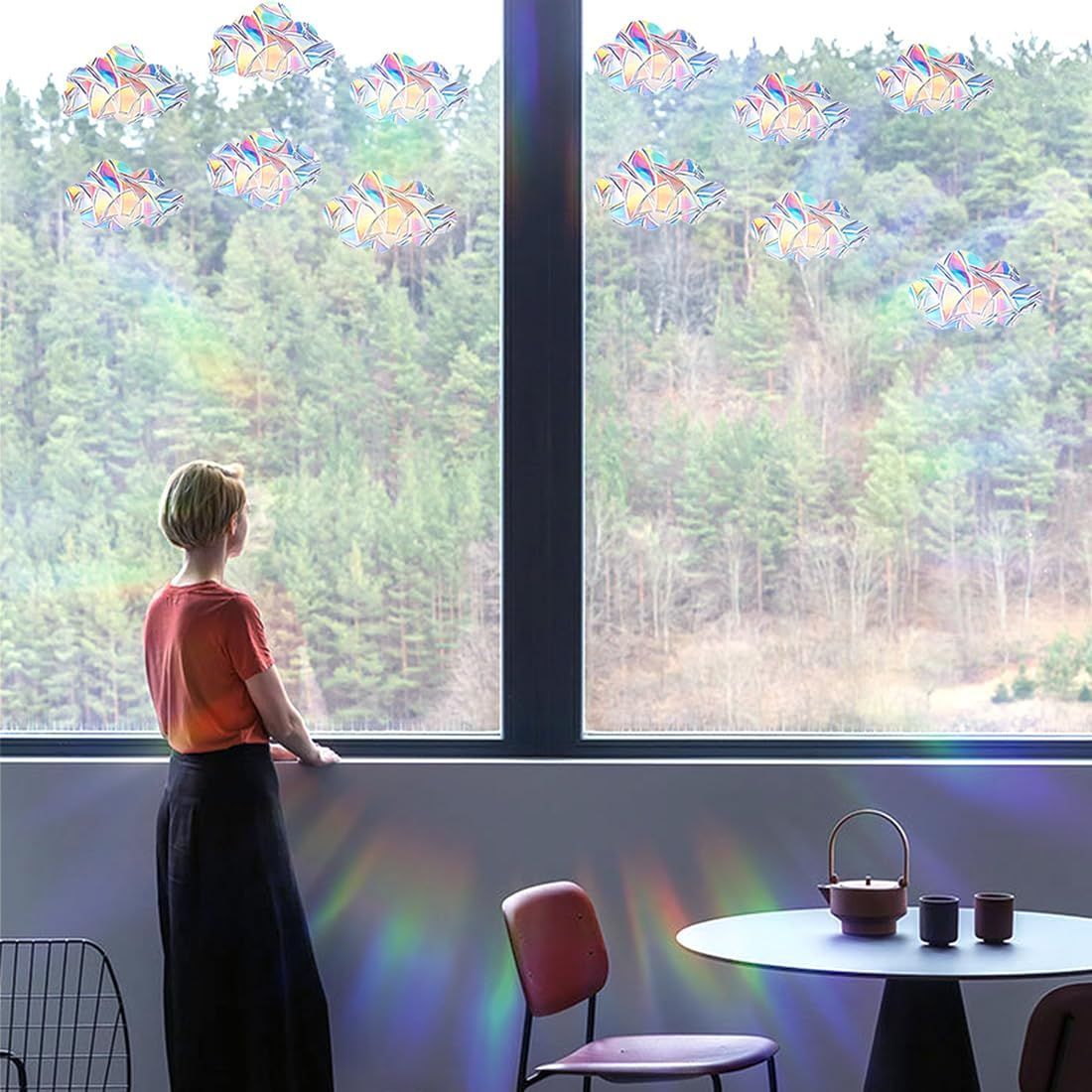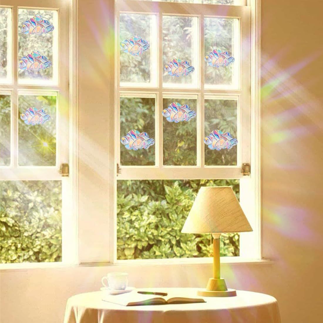 【使いやすい】簡単かつ便利にインストールすることができます。窓に貼り付けるだけで、光が通過する際に美しいスペクトル効果を生み出します。反鳥の衝突の窓のステッカーは鳥に警告し、窓に衝突することを防ぐことができます。従ってそれはガラス衝突から野鳥を保護できます。