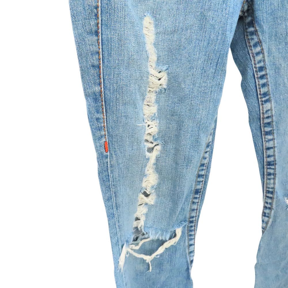 TRUE RELIGION(トゥルーレリジョン)の人気デニム、27インチ・RN112790モデル。ブルーカラーに映えるこなれたダメージ加工が施され、ブランドらしい存在感のある一本です。立体的なステッチや特徴的なバックポケットなど、トゥルーレリジョンならではのディテールを楽しめるデザイン。程よく細身のシルエットで脚のラインを綺麗に見せ、カジュアルからストリートまで幅広く着こなせます。長く愛用できる丈夫なデニム素材も魅力です。