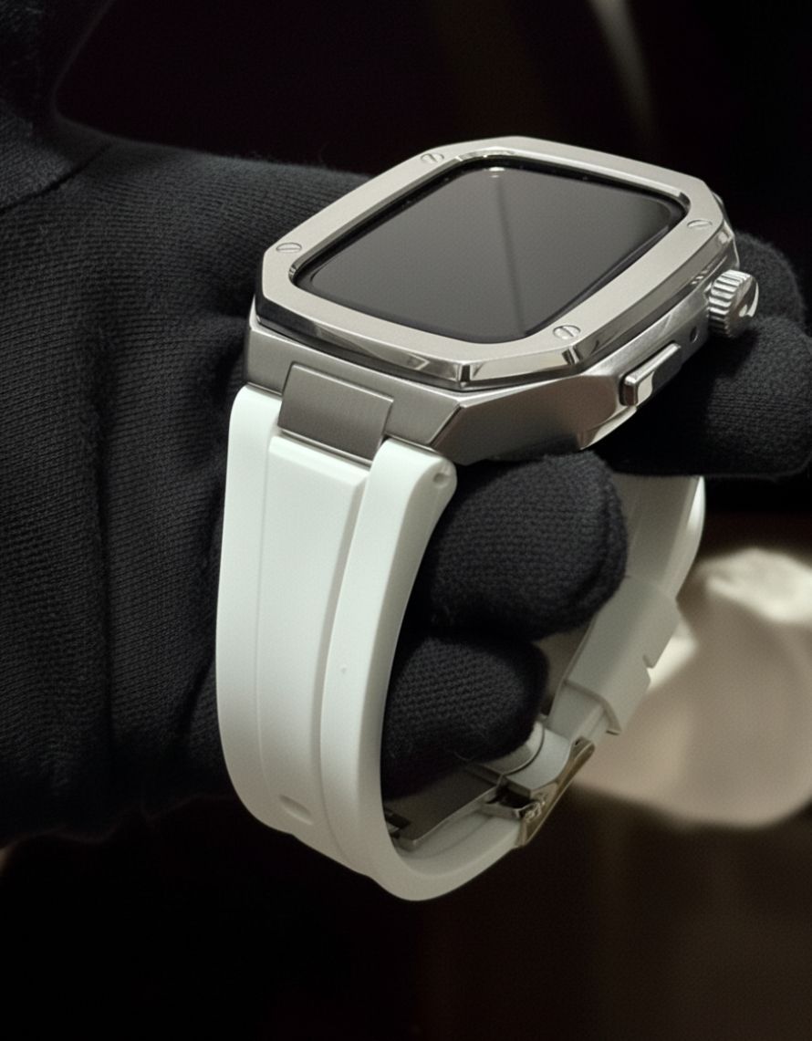 【最新デザイン Apple Watch カスタムメタル × ラバーバンド】