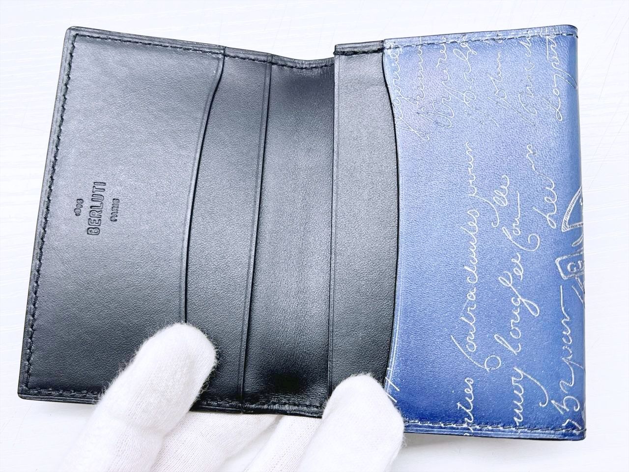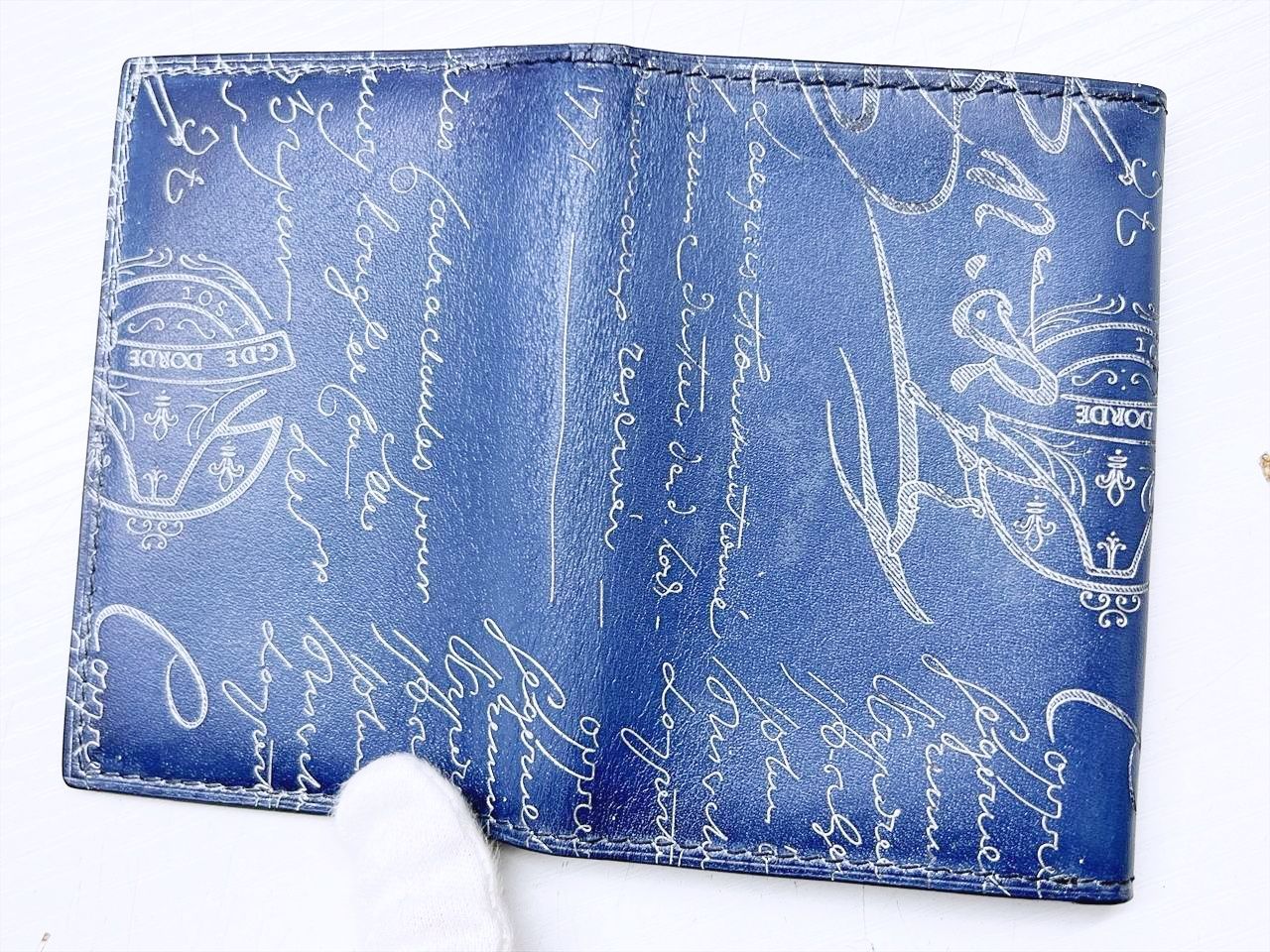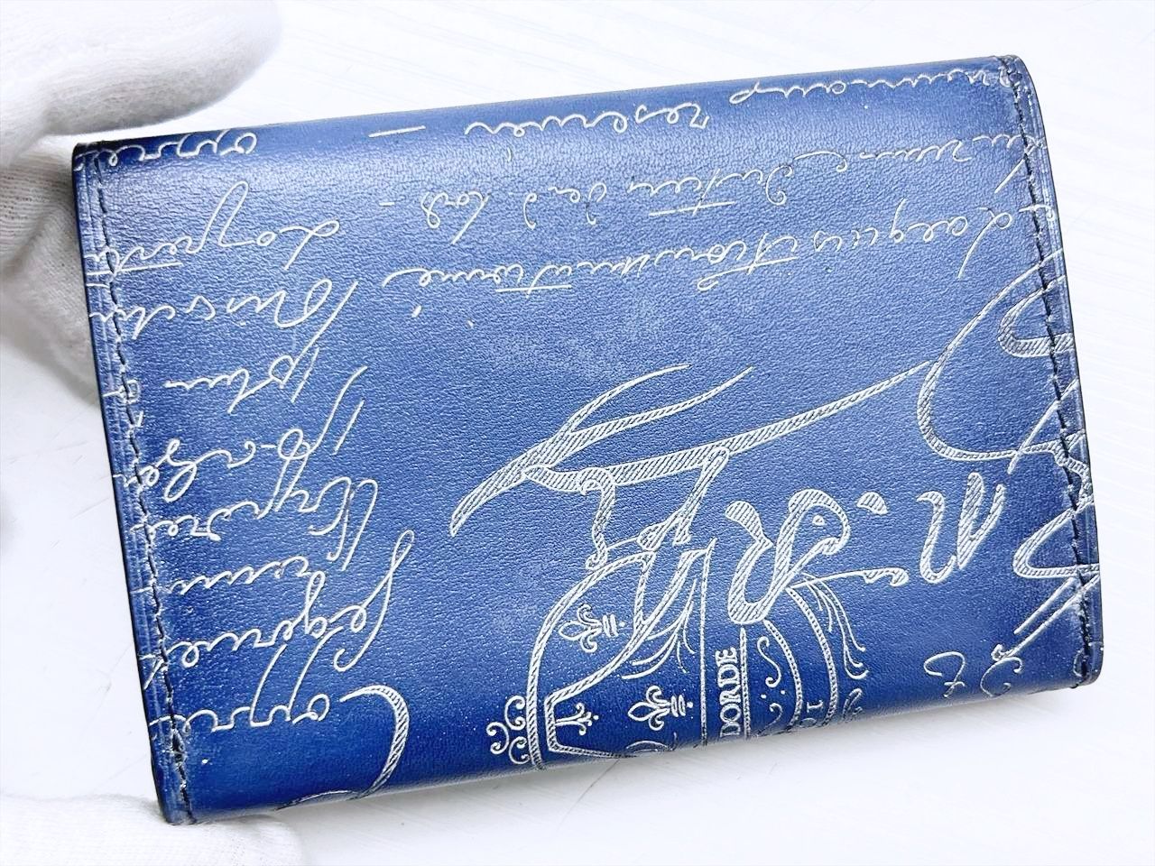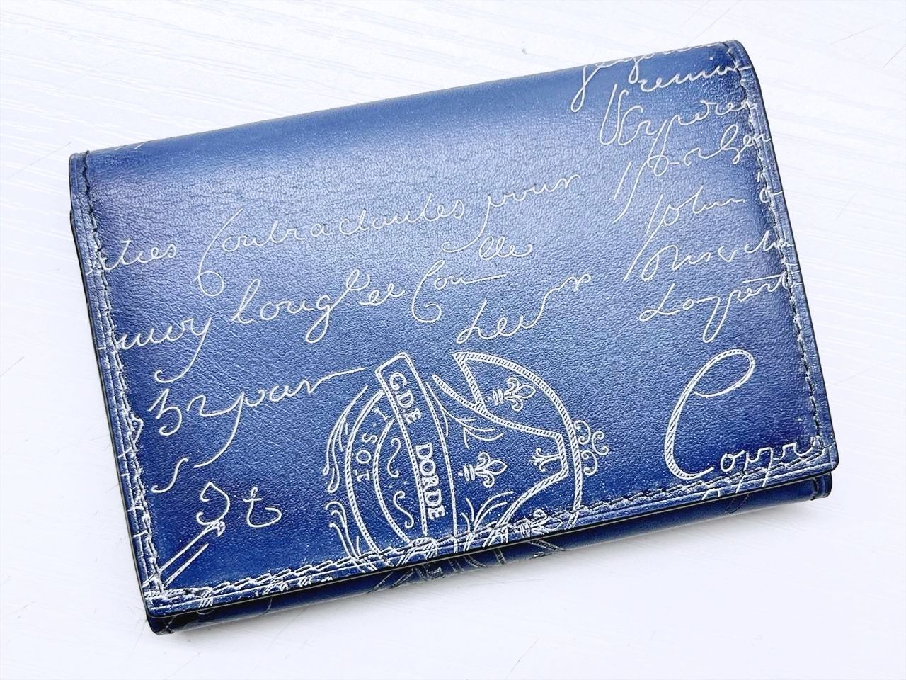 美品 Berluti ベルルッティ インブイア フラップ カードホルダー 名刺入れ ヴェネチア カーフレザー ブルー ホワイト 235728
