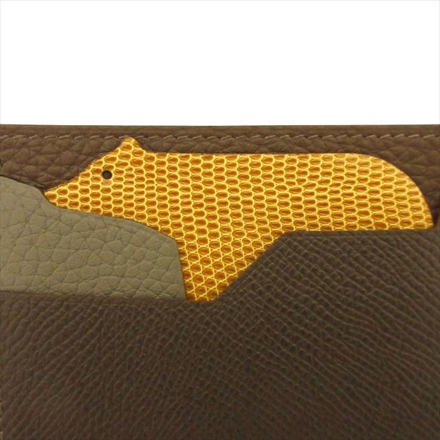 エルメス HERMES プティ アッシュ Petit h カードケース イストワール ナチュレル カードホルダー アニマル リザード エプソン トリヨンクレマンス レザー 茶 ブラウン グレー 黄 イエロー◆12