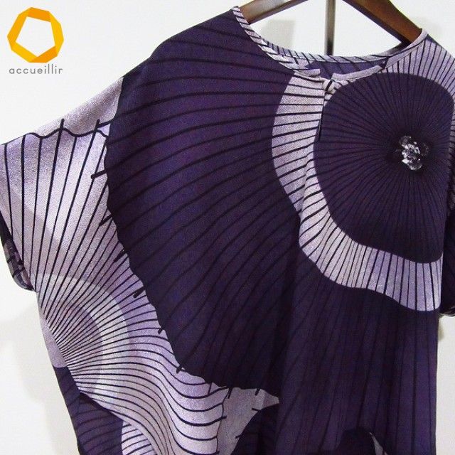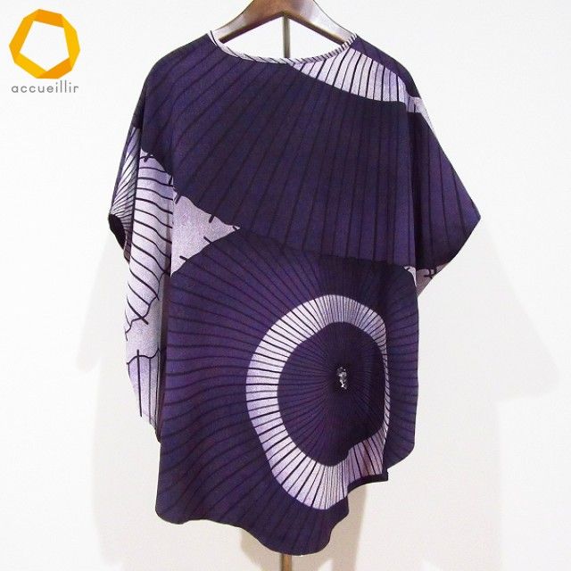 snc シセンドウ ヒトシタムラ 詩仙堂 BY HITOSHI チュニック 紫 薄紫 黒 ちりめん 半袖 総柄 レディース 975254