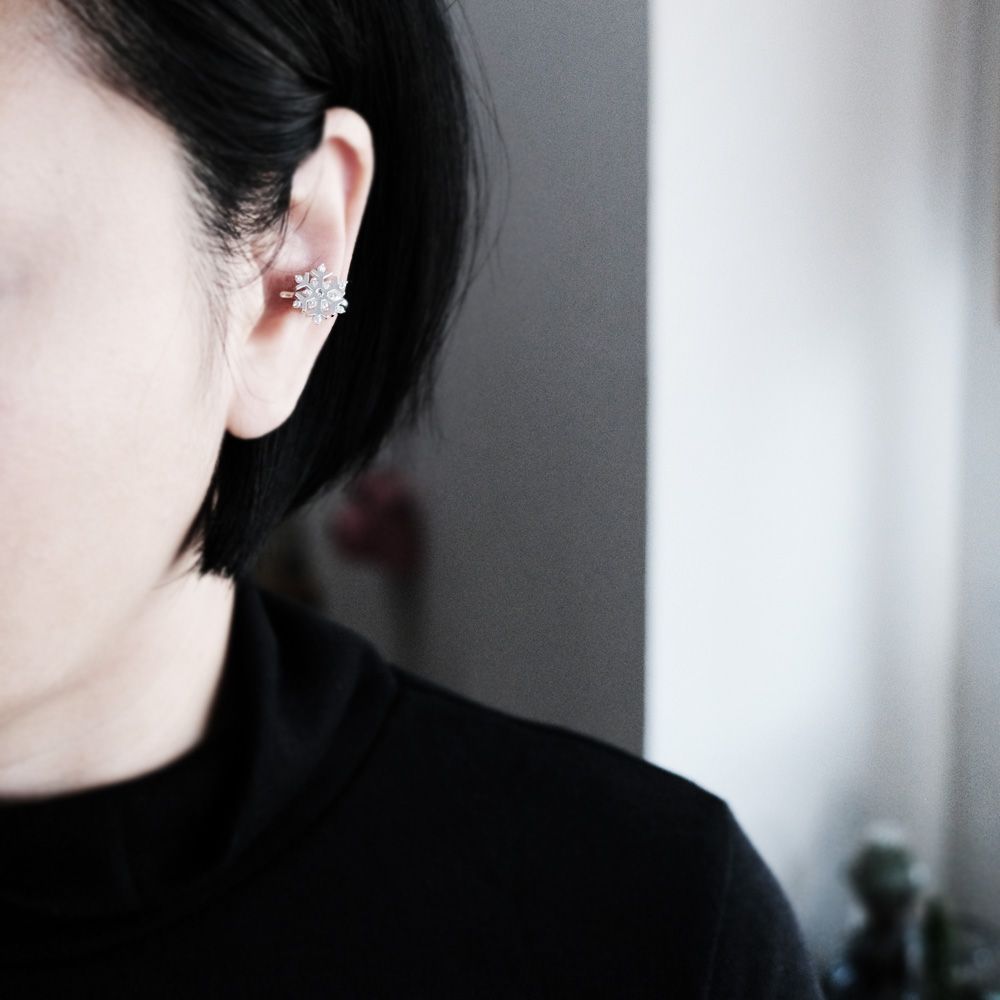 雪の結晶モチーフのイヤーカフ。