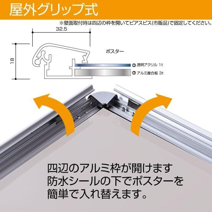 看板 店舗用看板 アルミスタンド 屋外使用 ポスター差替え式 グリップ式 両面 ライトブラウンW774mmxH1430mm wb1-d