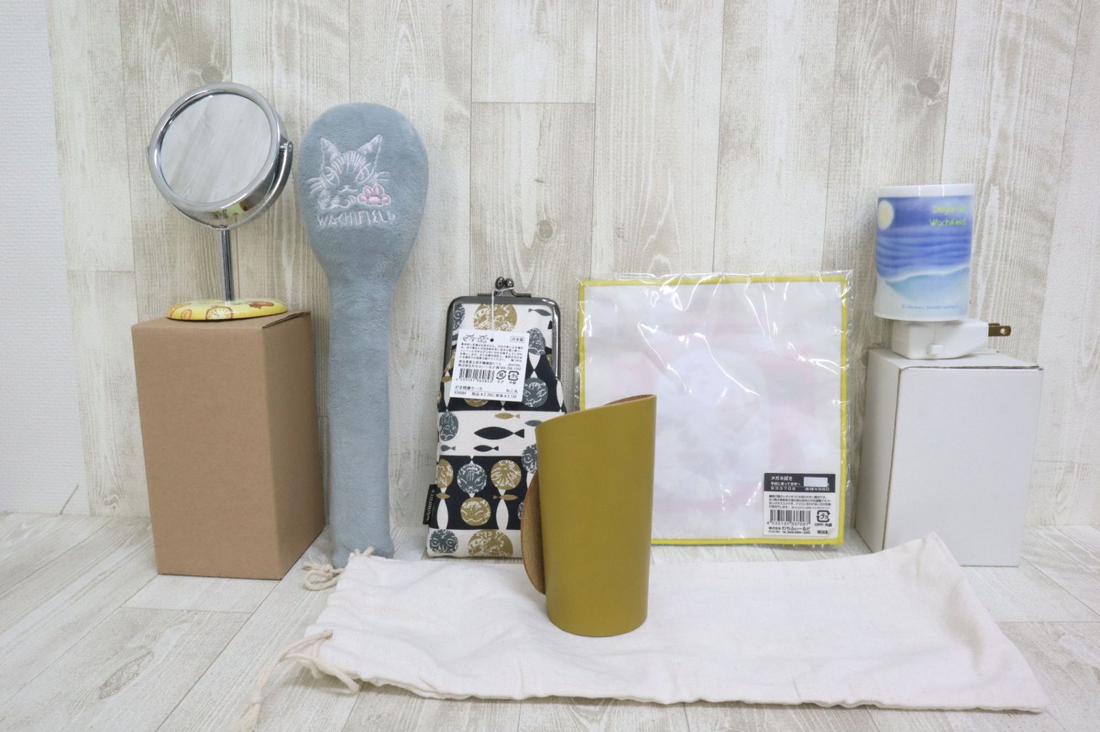 【商品名】WachiField わちふぃーるど ダヤン 肩たたき棒 眼鏡拭き 眼鏡ケース 眼鏡置きペンケース ミニスタンドミラー ライト(アロマコンセント) 6点セット まとめ ※未使用品の出品です☺