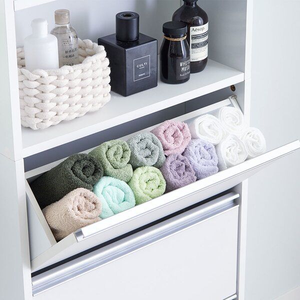 収納目安(幅45/フラップ1段):フェイスタオル約10枚、衣類約7枚