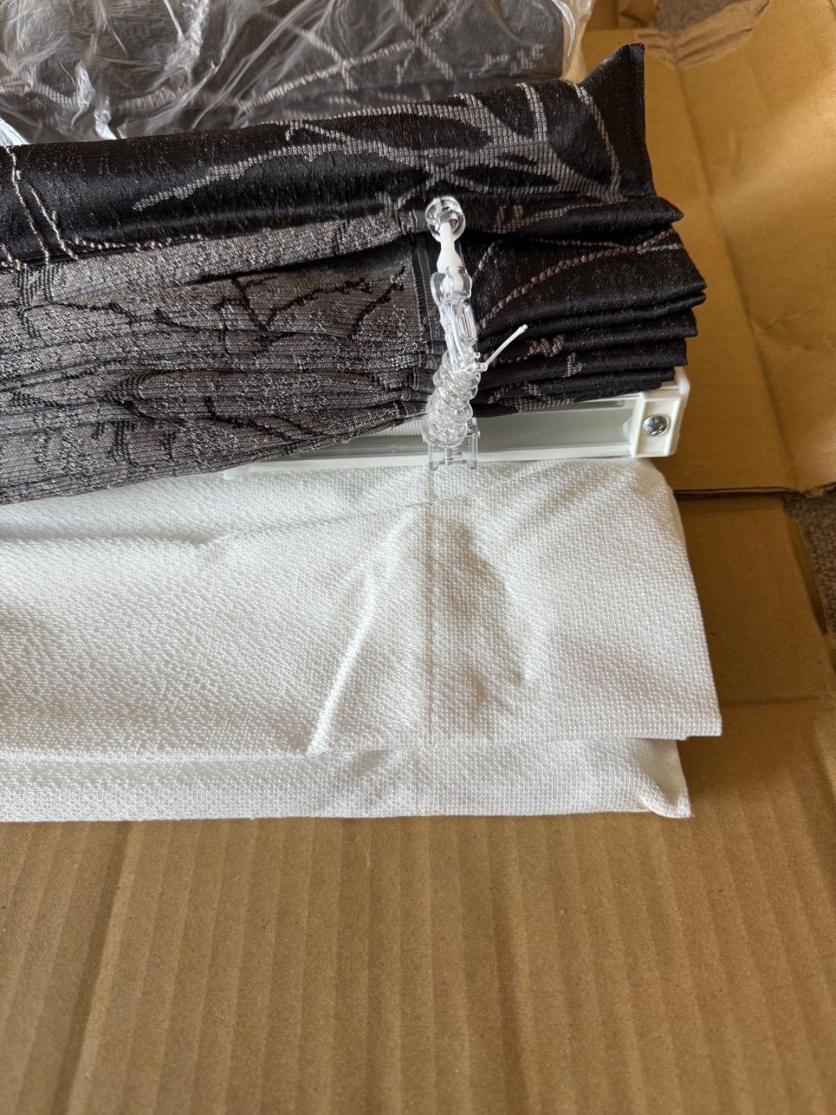 45.高所用の大きな窓に 254×143cm シェードカーテン ローマンシェード 枝模様ドレープ × UVカット 遮熱 花粉キャッチの機能レース ダブルシェード ツインシェード