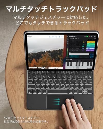 簡単にセットできるマグネット式スタンド:フローティングカンチレバーデザインにより、iPadをキーボードの上にスタイリッシュに浮かせることができ、ケースを開くだけで最適な角度に調整できます。