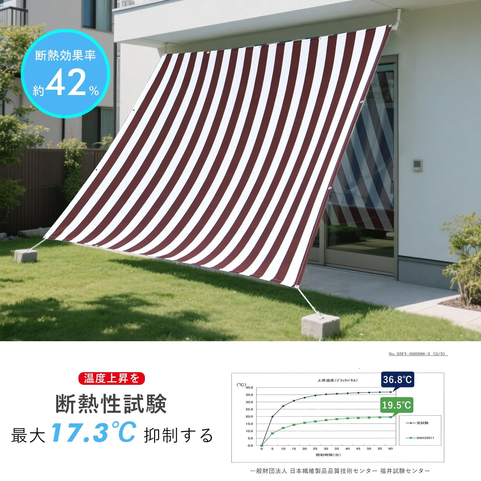 Cool Time クールタイム 200×240cm 日除け シェード オーニング 撥水 ブラウンホワイト
