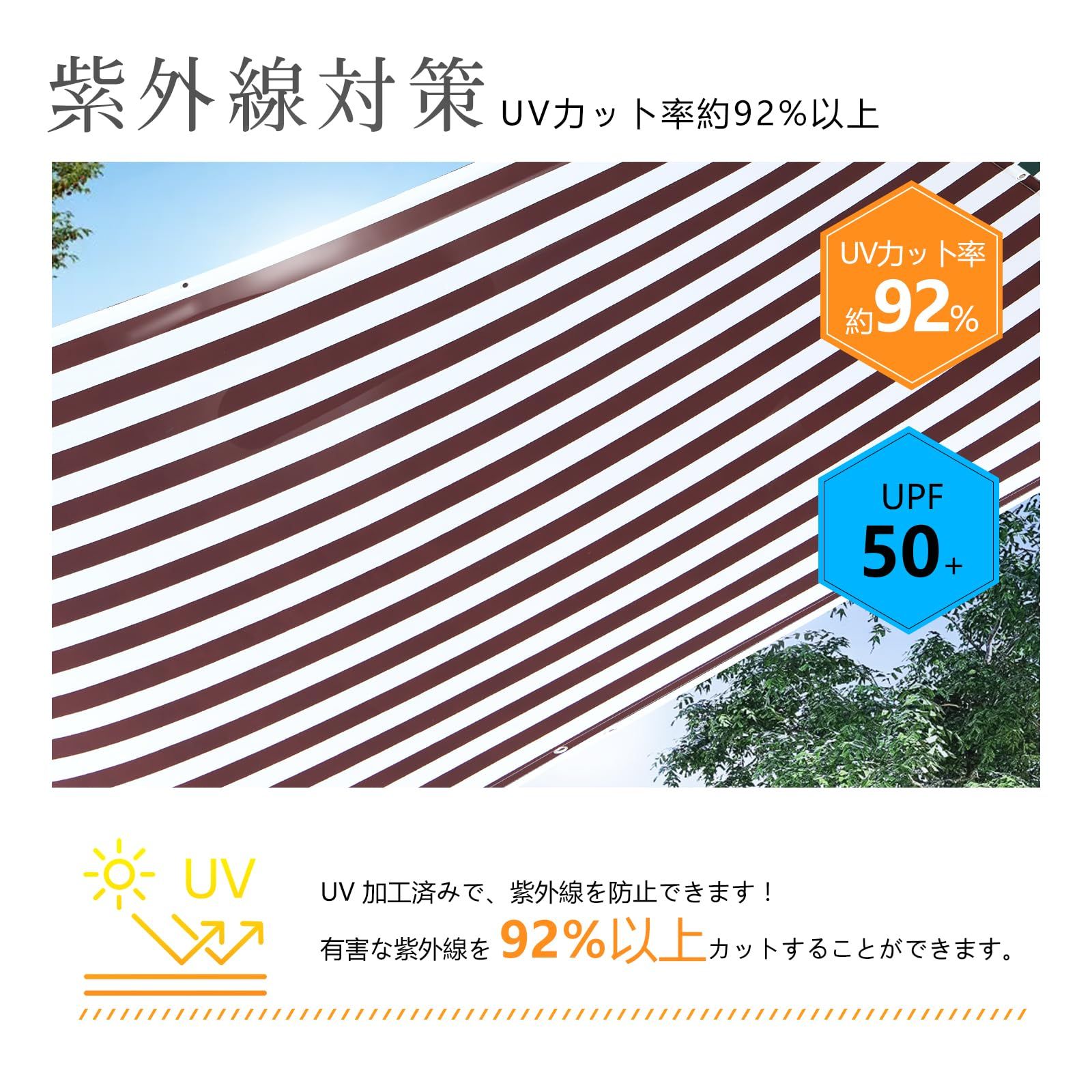 UV加工済みで紫外線を防止!有害な紫外線も95%カットするので、子供たちが遊ぶお庭や砂場の日よけに最適で。