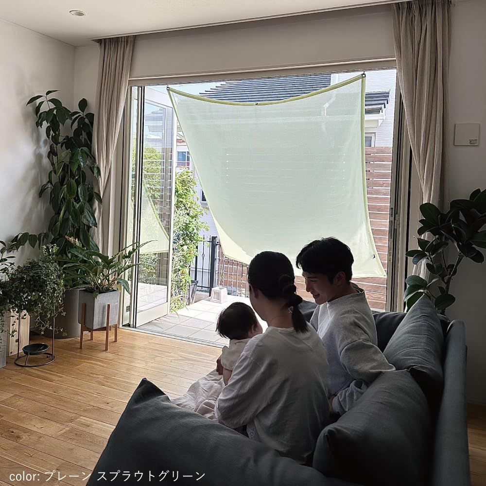 爽やかなグリーンが鮮やかに彩る、新芽をイメージしたシェードです。心癒されるような優しい明るさのグリーンが映える色合いとなっております。イチオリシェードは特殊な製法で、やわらかくしなやかな自社製品の高級生地を使用しております。光を完全に遮断するのではなく、家の中に明るさを取り入れる程度にやわらかな日陰を作り出します。シーズンオフも考え簡単に水洗いでき、小さく畳んで収納も出来ます。