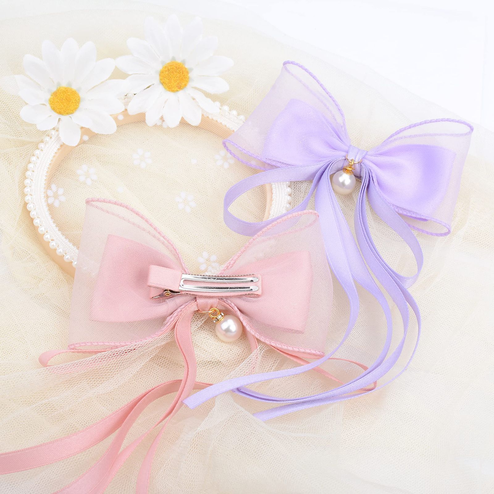 ロング 髪飾り リンセスリボン ヘア キッズ こども 子供 ヘアピン シフォン アレンジ 4点セット 赤ちゃん 髪留め おしゃれ ヘアクリップ 簡単 発表会 ベビー 結婚式 フォーマル BIANHUAN お誕生会