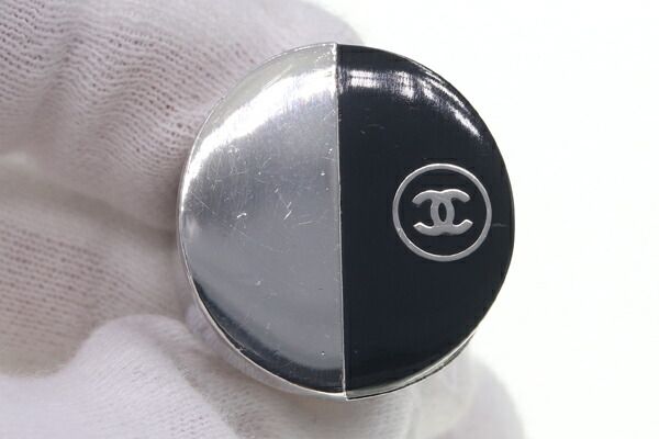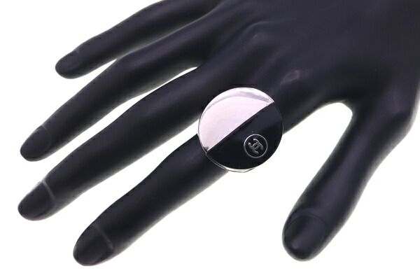 シャネルリングシルバーブラックメタルUSサイズ6.5-7/13号新品指輪アクセサリーココマークバイカラーレディースCHANEL