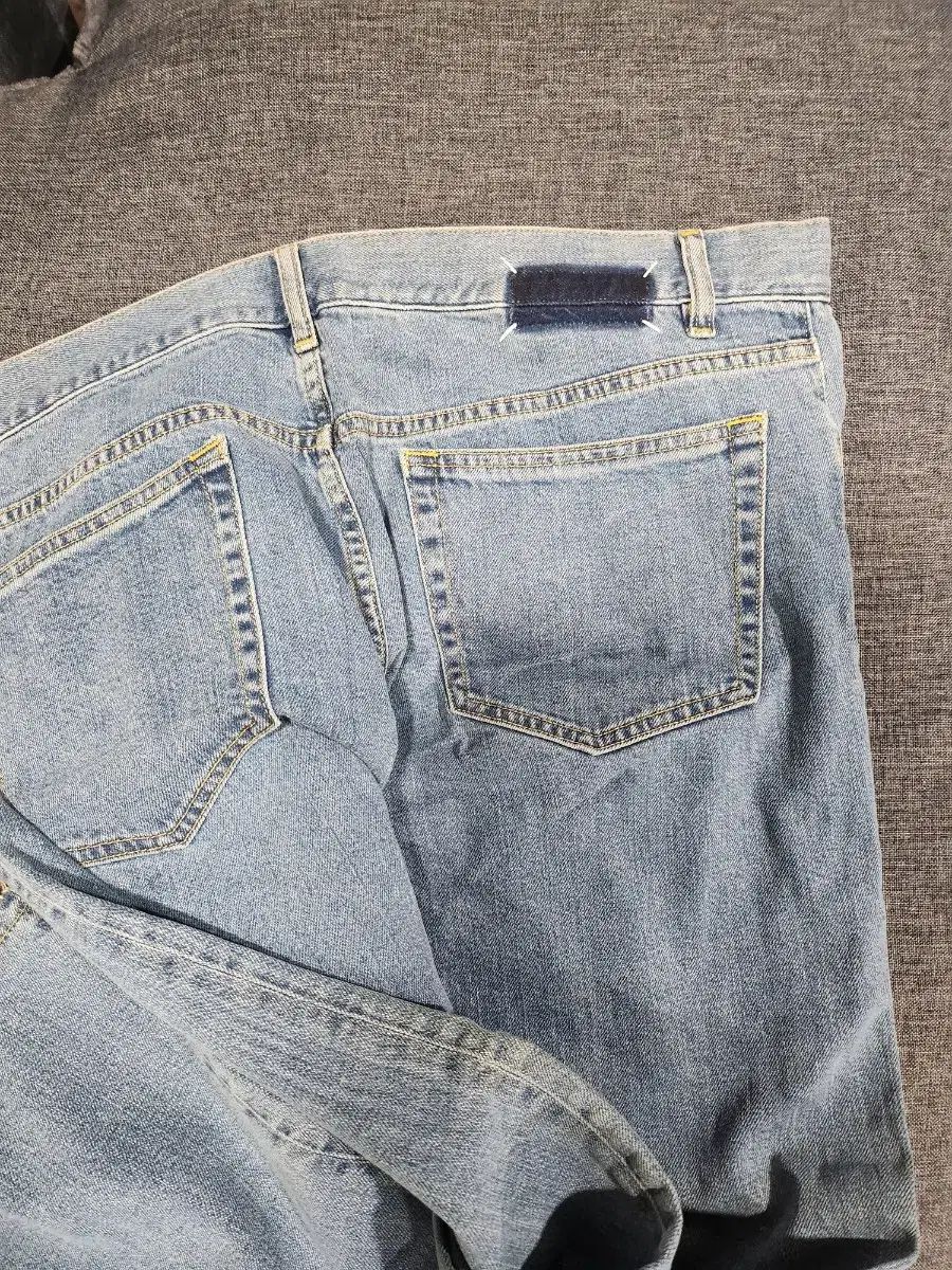 メゾンマルジェラ デニムパンツ 34サイズです。裾がカットオフデザインになっておりユニークです。色味もきれいに仕上がっており、デイリーに着用しやすいかと思います。特にコメントがなければ、そのまま安全決済をお願いいたします!