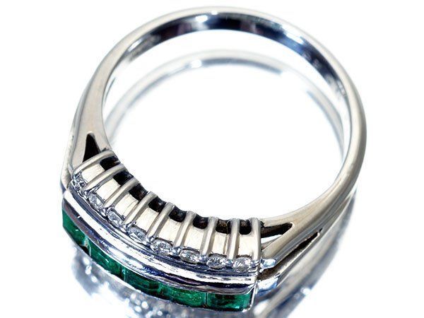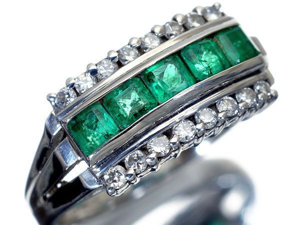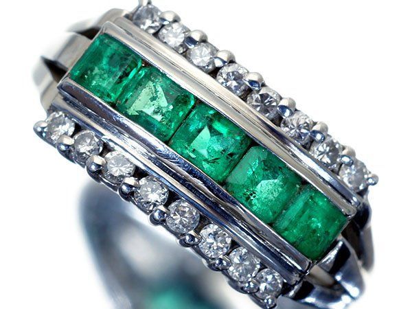 クラシックデザインで綺麗な色合い放つ良質天然エメラルド総計0.72ct&ダイヤモンド総計0.29ctを素敵に宝飾した、高級Pt900リングを激安価格で特別大放出致します!